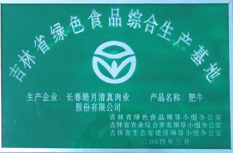 吉林省商務(wù)廳省級肉牛產(chǎn)品出口基地牌